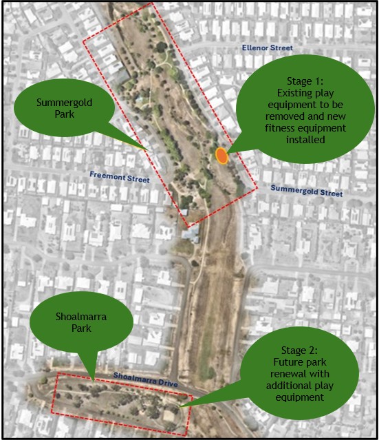 Following a review of this community asset - particularly the playground's proximity to Summergold Street - Council is proposing changes to improve the park's layout, usability, and safety features. At the same time, Council is planning a future upgrade at Shoalmarra Park to enhance play value and offer a wider range of inclusive community facilities.